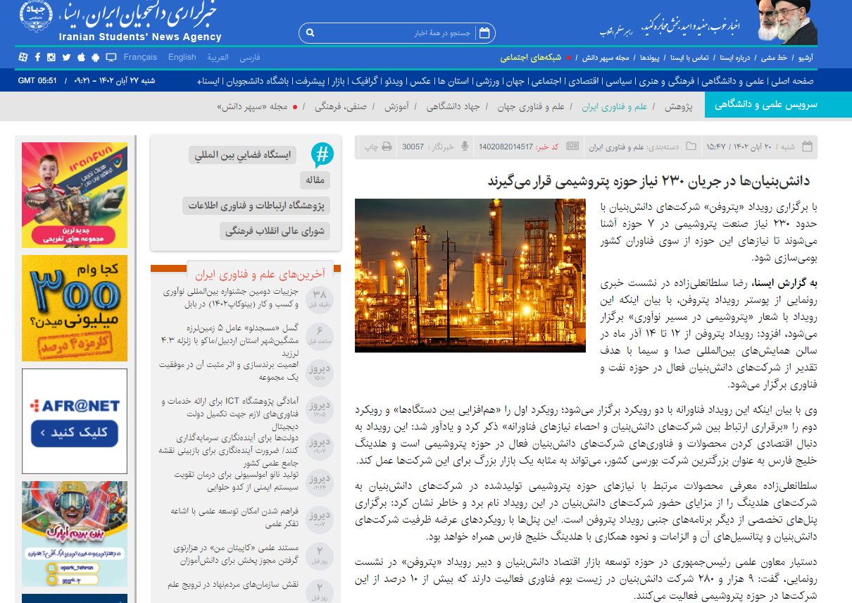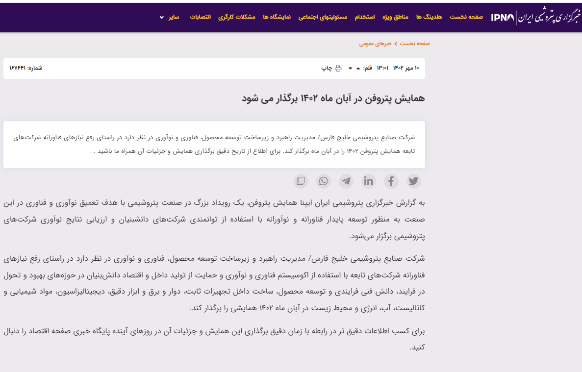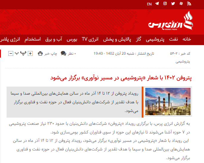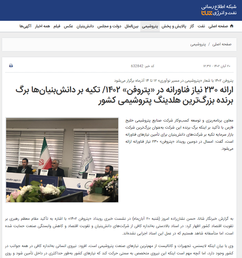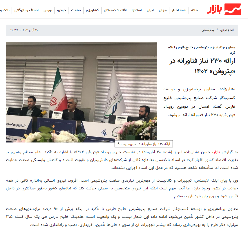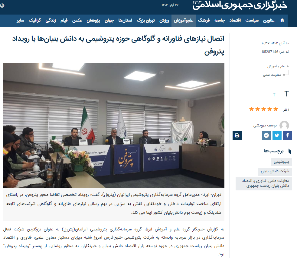 انعکاس نشست خبری رویداد پتروفن 1402در خبرگزاری ها که با حضور گروهی از خبرنگاران با هدف همافزایی بین دستگاهها و بازیگران اصلی صنعت پتروشیمی کشور و ارتباط بیواسطه بین شرکتهای دانشبنیان با صنعت پتروشیمی و طرح نیازهای هلدینگ خلیجفارس برگزار شد، به این قرار: